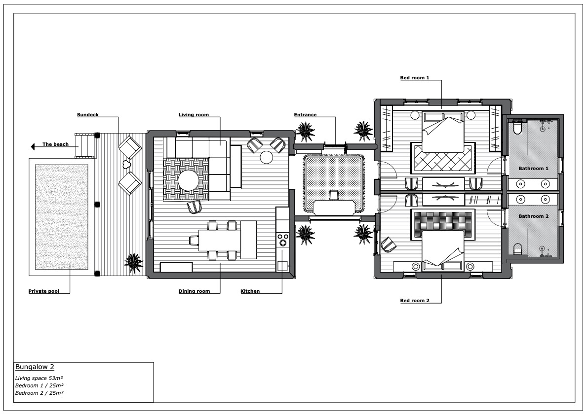 Le Bohemian Blue Beach House est composé de 2 chambres spacieuses climatisées avec vue sur la mer, un lit king size et 2 salles de bain.